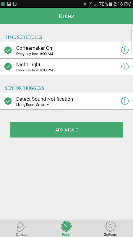 • Create Rules (schedules) to turn iHome SmartPlugs on or off automatically