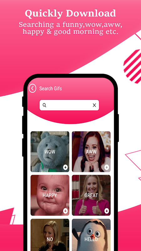 ● It is an easy to use Image Search app for Android that helps you search for images or GIF online.