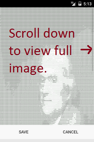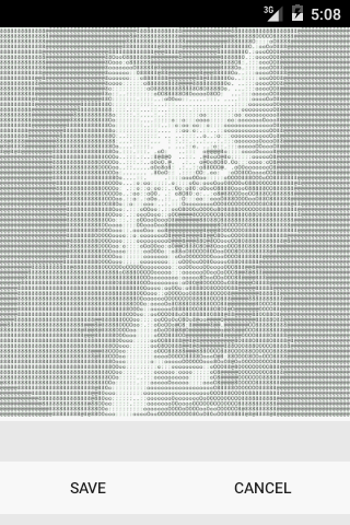 يسمح لك لتحويل الصورة لASCII الفن (أبيض وأسود). يسمح لالتقاط صور وتحويل ذلك أيضا.