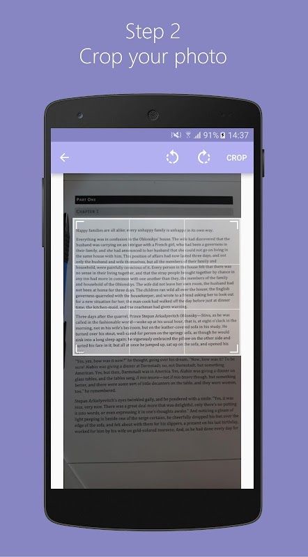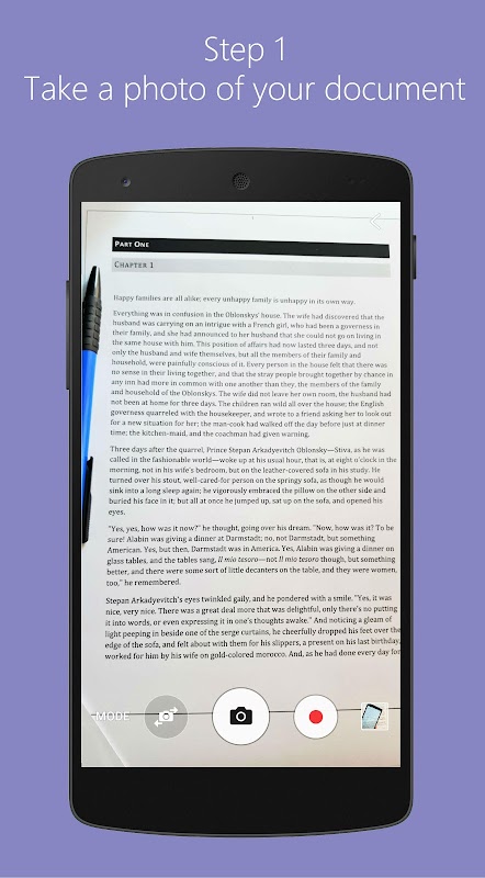 ترسل الملفات لخدمتنا حيث يتم تحويلها عن طريق التكنولوجيا التعرف الضوئي على الحروف قوية، لذلك لن يتم استنزاف بطارية هاتفك والموارد من خلال التحويل. بعد تحويل ملف، يتم تحميلها النتيجة مرة أخرى إلى التطبيق، ويتم حذف الملفات من خوادم لدينا على الفور.