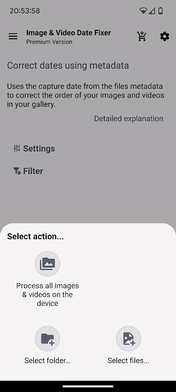• تعيين بيانات EXIF أو البيانات الوصفية للوقت السريع بناءً على تاريخ تعديل الملف
