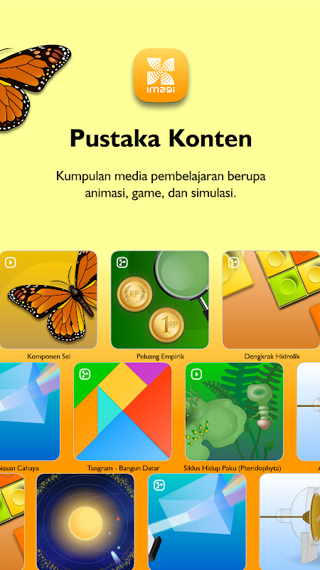 Imagi هو تطبيق تكميلي للكتب المدرسية الذكية والمميزة من ناشري ALC. الكتب المدرسية الذكية والشخصية، الكتاب الرئيسي للناشر ALC (مركز Assyifa التعليمي)، يأتي خصيصًا مع الخصائص الإسلامية في محتواه، ويستهدف المدارس الإسلامية و/أو المدارس الإسلامية الداخلية.