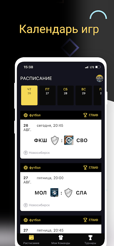 التطبيق يتيح للفرق متابعة البطولات في المدينة.