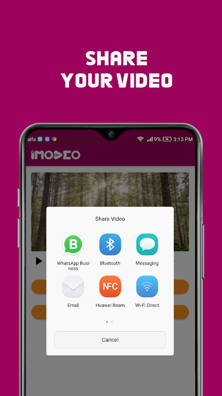 يتيح لك imodeo أيضًا مشاركة الفيديو الذي تم إنشاؤه مع أصدقائك.