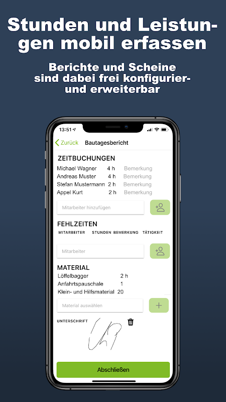 التقط أي نماذج أو قسائم أو تقارير رقميًا على الجهاز المحمول وانقلها عبر الإنترنت إلى الشركة. بقدر المرونة التي يتطلبها العمل اليومي: يمكن معالجة العديد من مواقع البناء بشكل متوازٍ ، أو التسجيل بمفردها أو على دفعات ، أو التسجيل اللاحق للملاحظات ، أو خيارات متنوعة لساعات الحجز أو تسجيل الاستهلاك. يمكن توسيع النماذج ديناميكيًا ومرونة: