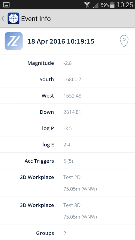 * عرض معلومات مفصلة الحدث، بما في ذلك عدد من محطات رصد الزلازل نتج عن ذلك المكان، معلمات مصدر، أقرب 2D و / أو مكان العمل 3D ومجموعة الرابطة التي تنتمي إليها