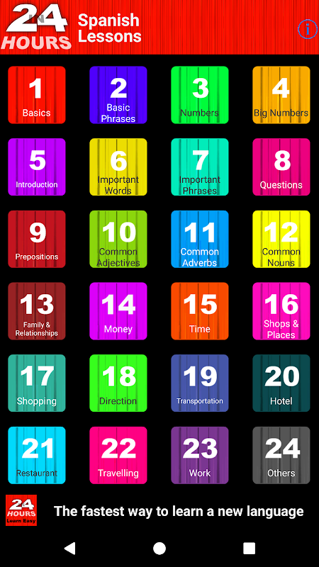 Whether you are an academic student, tourist, explorer, adventurer or businessman, this app will make sure you speak Spanish in 24 hours!