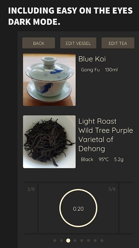 * إعدادات مسبقة تلقائية لأنواع الشاي - سواء كنت جديدًا في مجال الشاي أو خبيرًا، فإن التطبيق يساعدك على الحصول على نقطة بداية جيدة وفقًا للشاي الذي تكتبه