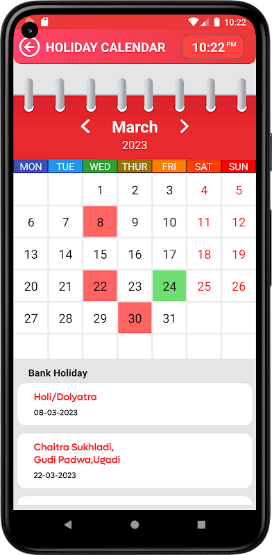 كما يوضح العنوان ، يغطي تطبيق التقويم هذا جميع الإجازات الرئيسية في عام 2023. سيساعدك التقويم على إدارة وقتك بشكل أكثر كفاءة ، خاصة إذا كنت موظفًا حكوميًا وموظفًا في البنك أو شخصًا مشغولاً.