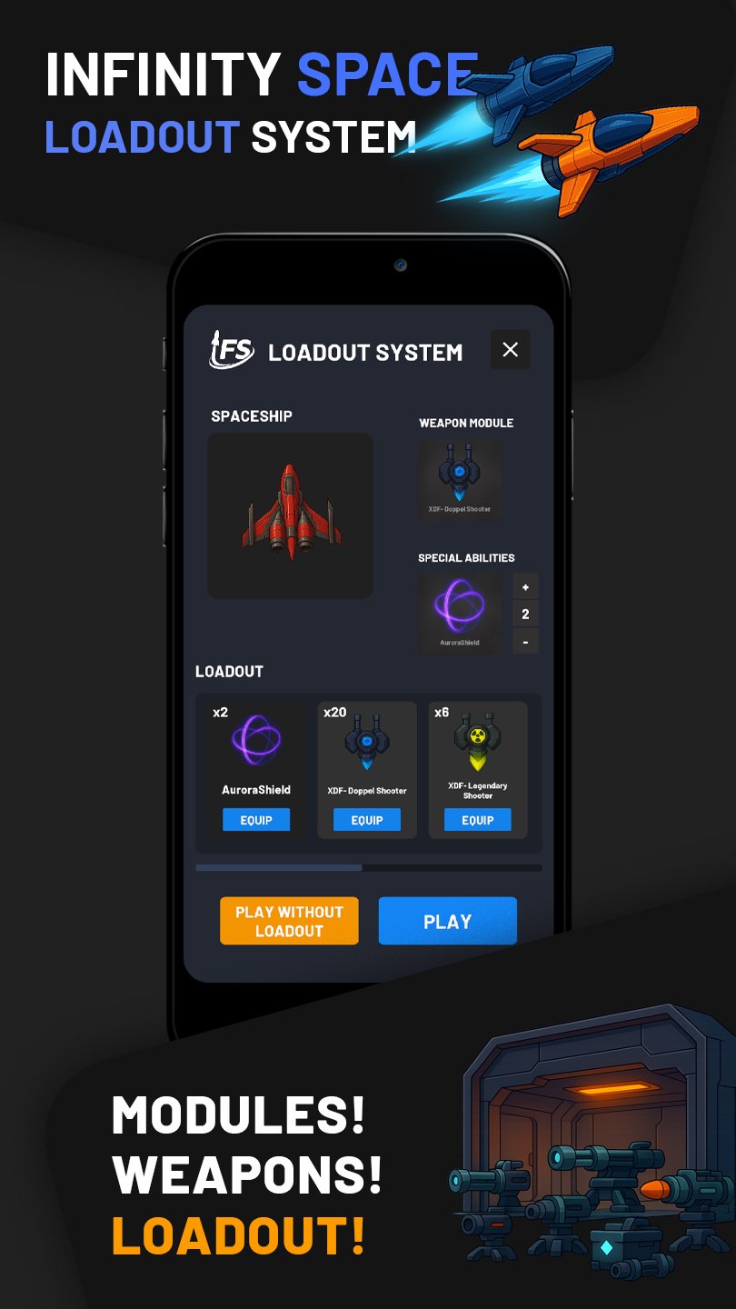 الماس هو العملة الرئيسية في Infinity Space، ويُستخدم لفتح السفن والترقيات.
