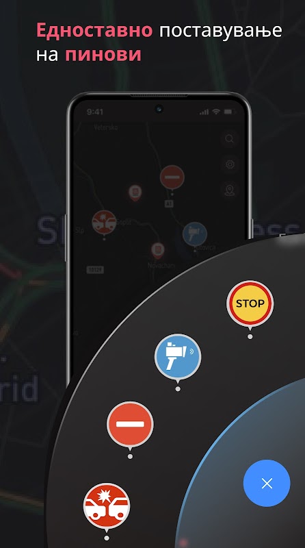 - Добивајте навремени нотификации кога се приближувате до радар или сообраќајна камера.