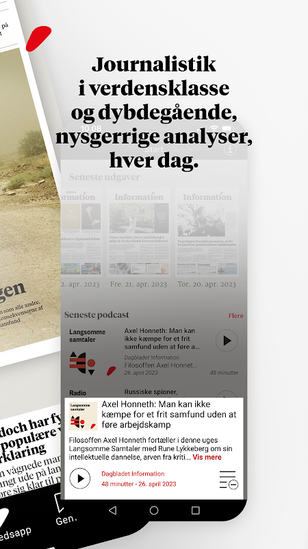 كل يوم يمكنك أيضًا الاستماع إلى المقالات التي تُقرأ بصوت عالٍ في التطبيق ، والتي يتحدث بها كتابنا ورواةنا المحترفون ، تمامًا كما يمكنك الوصول إلى ملفات البودكاست من المعلومات التي تفضلها ، على سبيل المثال الإصدار الأسبوعي من "معلومات الراديو". يمكن أيضًا حل لعبة sudokus اليومية والألغاز الأخرى مباشرةً في التطبيق.