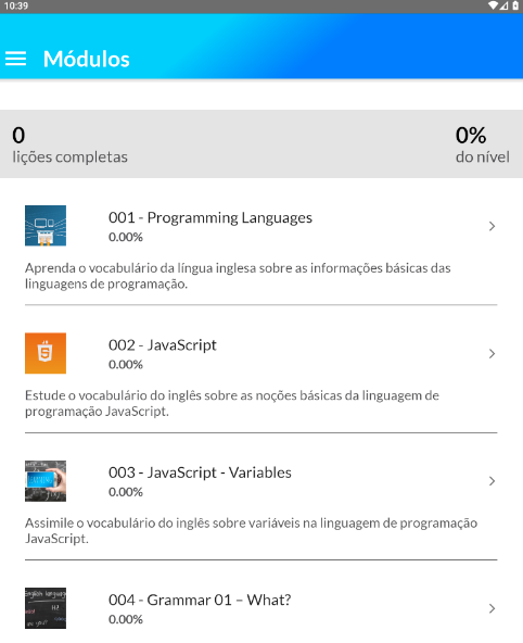 تم تطوير أنشطة InglêsTEc من قبل متخصصين في اللغة الإنجليزية بالشراكة مع متخصصين في البرمجة. لذلك، أثناء دراسة اللغة الإنجليزية، يتذكر مستخدم InglêsTEC مفاهيم مهمة للمطور.