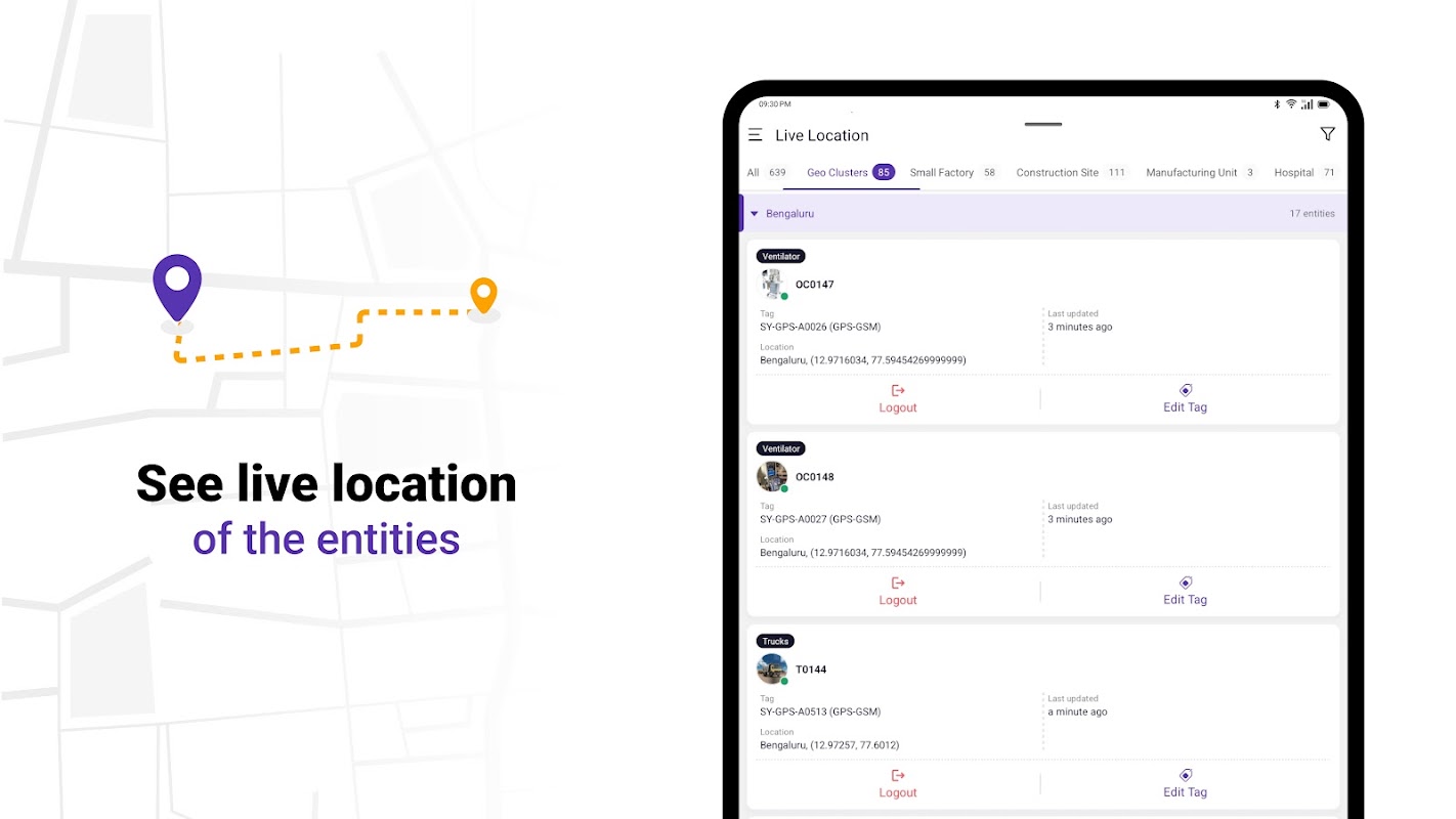 التطبيق المحمول إينست التي وضعتها Syook يوفر وسيلة سهلة لتصور العمليات في الوقت الحقيقي على واجهة بسيطة المحمول، بديهية وسهلة الاستخدام. يمكن للمستخدم بسهولة تتبع في الوقت الحقيقي موقع الموجودات، رصد البيانات من أجهزة الاستشعار في الوقت الحقيقي، والحصول على التنبيهات والإشعارات قابلة للتنفيذ وذات الصلة. كما يتيح إينست المستخدم إلى النقر فوق الصور وإرفاق المعلومات المتعلقة بالموجودات نشرها.