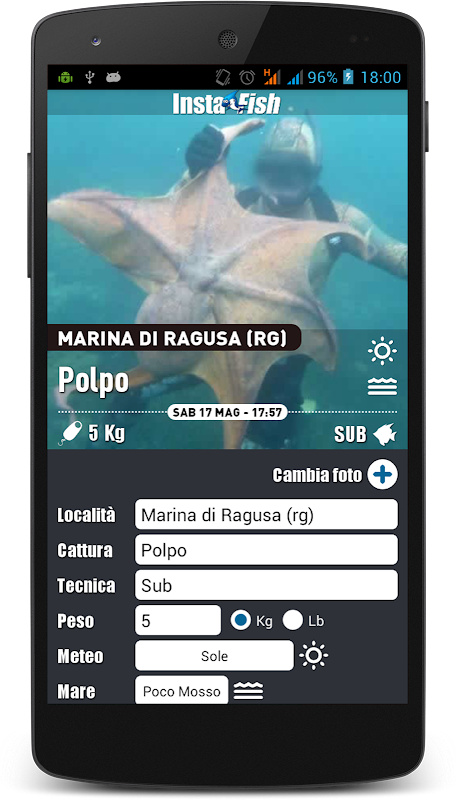 InstaFish، وتطبيق لجميع هواة الصيد (الهواة والمحترفين) الذي يسمح لك لمشاركة الصور من صيدهم مع الأصدقاء.