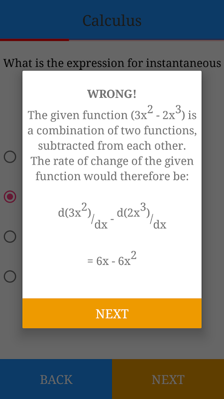 This app teaches you the basics of calculus from the definitions all the way to the application of differentiation and integration.