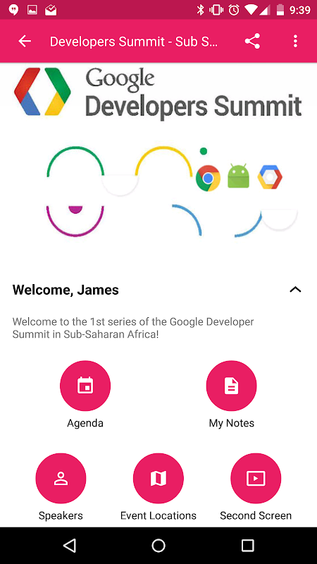 The Interactive Events App allows guests to find speaker and agenda information. It also gives guests the opportunity to interact with speakers on stage, take notes, participate in Q&A, connect to social media, and request further follow up information. The app is only available for Google events.