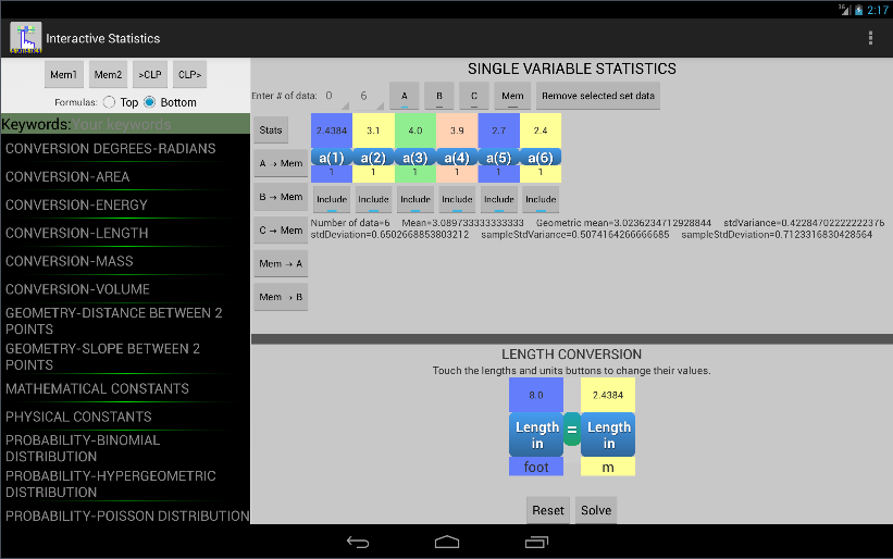 هذا التطبيق هو وسيلة سهلة لاستخدام آلة حاسبة الإحصاءات على أساس العناصر التفاعلية.