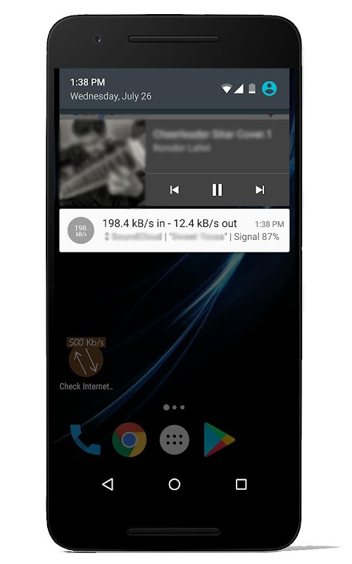 If you connection changes frequently from WiFi to mobile data or mobile data to WiFi then don’t worry it’s the best app to handle it. This app does the bandwidth test and also the download speed test all the time on notification panel and stay updated every second about your internet speed.