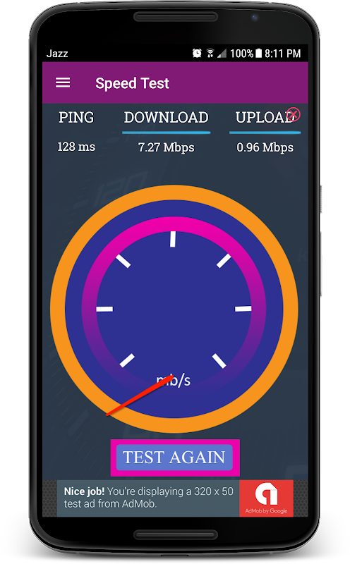 Internet Speed Test application is very easy to use and show quickly speed result. Just click start button and check DOWNLOAD and UPLOAD speed. You can change speed mode like ANALOG, DIGITAL, KB/sec and MB/sec. See results of all speed modes. You can also check your previous internet speed results and edit or delete results also share your internet speed results for social media sites and friends. At the end you can check complete result your internet speed test with DATE, TIME, ANALOG, DIGITAL, KB/S and MBP's.
