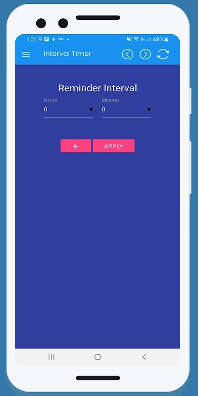 This Interval Timer Appfocuses on a minimalistic design as well as an intuitive way to interact with it. You are completely free to configure your own interval Hope you enjoy it!