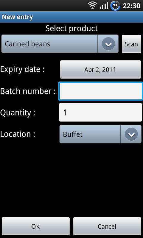 - product identification : that app isn't linked to some online product database. When you scan a new product, it ask you to enter the designation.