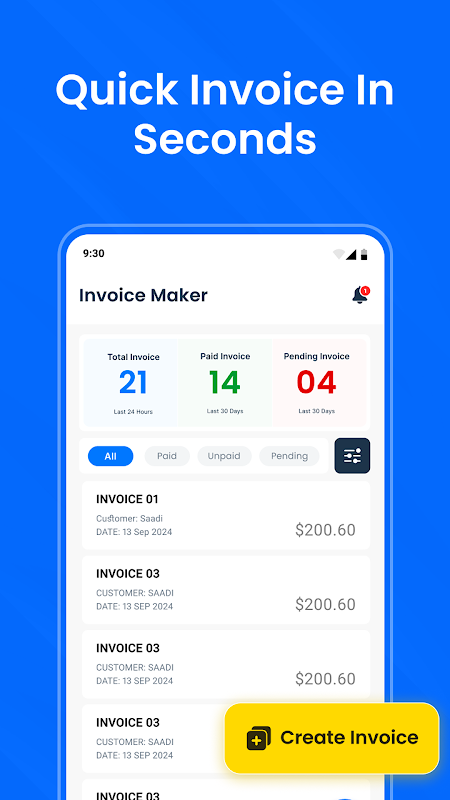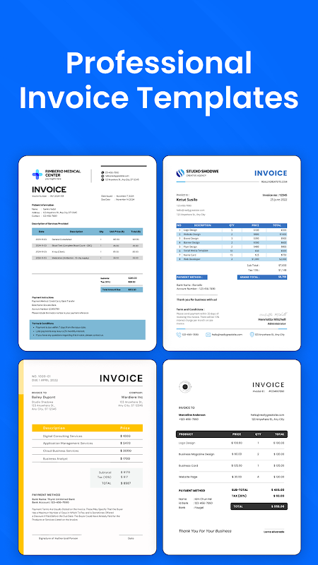 سواء كنت تُرسل فاتورة إلى عميل، أو تُنشئ عرض سعر لمشروع جديد، أو تتبّع دخل عملك، فإن هذا التطبيق يُسهّل عليك الأمر.