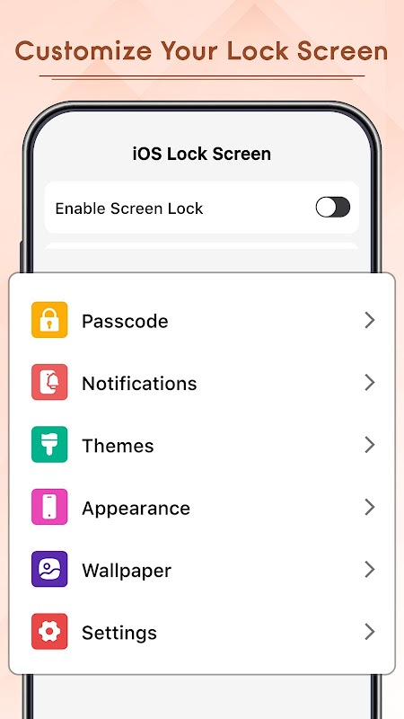 باستخدام تطبيق iOS Lock Screen & Wallpapers، يمكنك الاستمتاع بإشعارات iOS مما يسمح لك بإدارة التنبيهات بطريقة مألوفة وفتح هاتفك بسهولة. ما عليك سوى النقر على أي إشعار iNotification مباشرةً من شاشة القفل لفتح قفل جهازك بسرعة. بالإضافة إلى ذلك، يمكنك إعداد رمز مرور لقفل هاتفك لتعزيز الأمان، وضمان حماية جهازك مع توفير تجربة مستخدم سلسة وفعالة. علاوة على ذلك، يقدم تطبيق iPhone Lockscreens مجموعة متنوعة من خلفيات iLock Screen، مما يسمح لك بتخصيص شاشة القفل الخاصة بك بأحدث الخيارات وأكثرها أناقة.