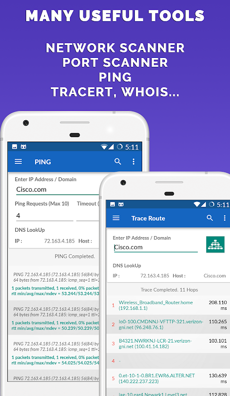 - شبكة الماسح : يعرض جميع المعلومات الأجهزة المتصلة في الشبكة نفسها.