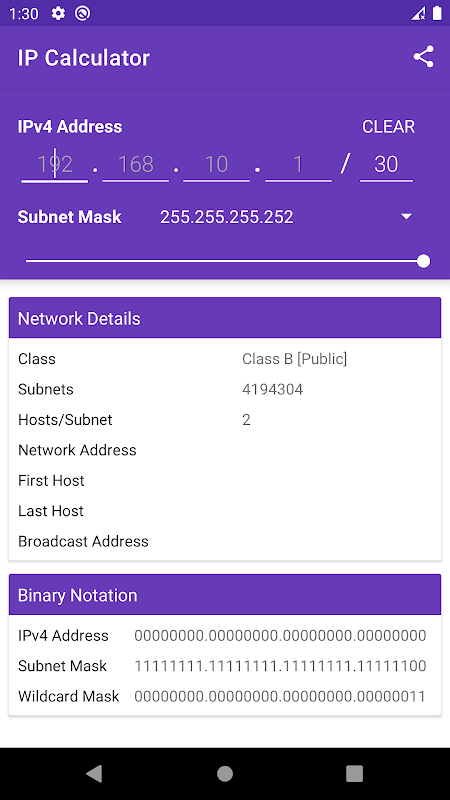 IP Calculator هو تطبيق أداة مصمم خصيصًا لمهندسي الشبكات ومتخصصي تكنولوجيا المعلومات ومسؤولي الشبكات والطلاب وما إلى ذلك لحساب المهام المتعلقة بعنوان IP ومعالجتها. بعض الميزات الأساسية المضمنة في حاسبة IP على سبيل المثال لا الحصر -
