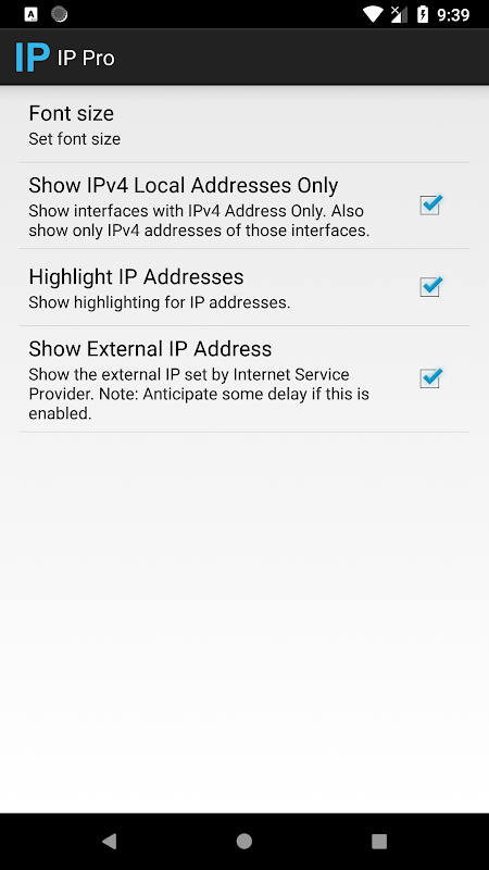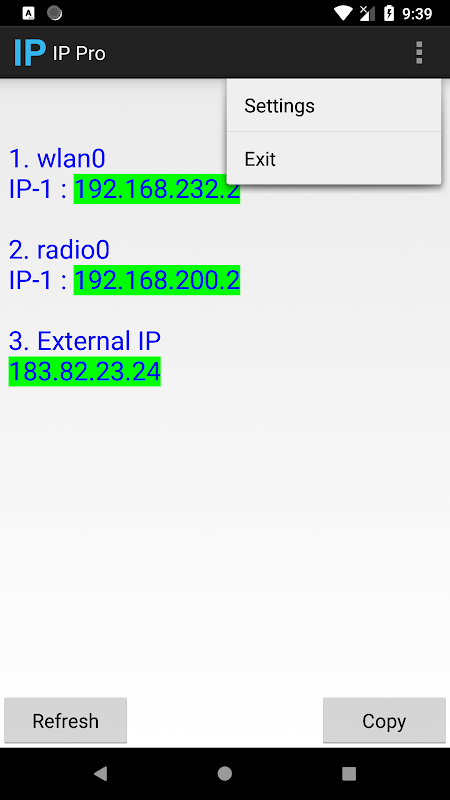 ما عليك سوى فتح التطبيق للتحقق من تفاصيل واجهات عناوين IP المعينة وعنوان IP الخارجي.