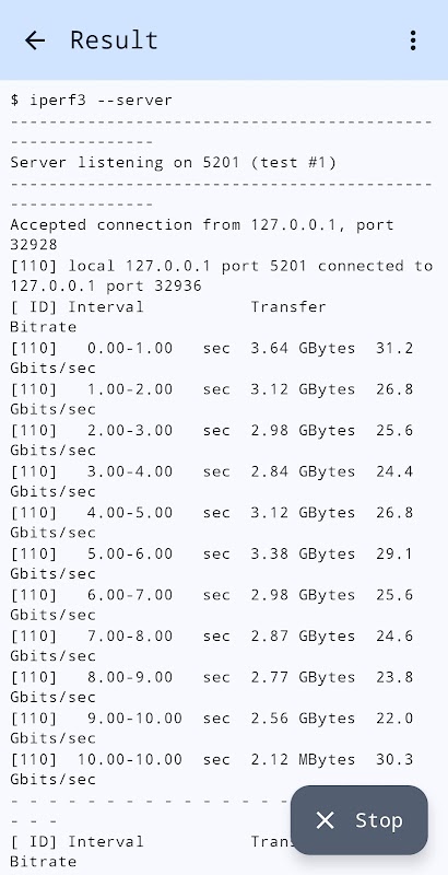 هذا التطبيق عبارة عن غلاف Android بسيط ونظيف لـ iPerf3، مما يسمح لك بتشغيل اختبارات سرعة الشبكة مباشرة من جهاز Android الخاص بك. سواء كنت مهندس شبكات، أو مسؤول تكنولوجيا معلومات، أو مجرد مستخدم فضولي، فإن هذا التطبيق يمنحك واجهة خفيفة الوزن لكنها قوية لتشغيل اختبارات iPerf3 في أي وقت وفي أي مكان.