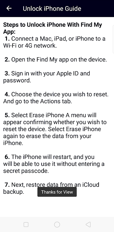 يحتوي هذا التطبيق على Unlock iPhone Guide ، وفتح iPhone باستخدام 4uKey ، وأفضل إزالة قفل تنشيط iCloud ، وإعادة تعيين إعدادات الشبكة ، وإعادة تعيين إعدادات شبكة Wi-Fi ،> إعادة تعيين دليل كلمة مرور معرف Apple.