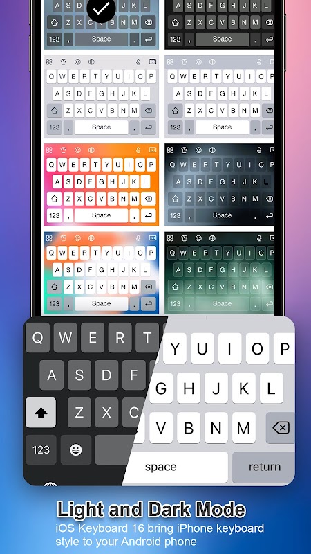 انتقل بسلاسة بين الوضعين الداكن والفاتح لتكمل بيئتك، واستمتع بالحنين إلى أصوات الكتابة الأصلية لنظام iOS. تم تصميم لوحة مفاتيح iPhone - iOS 17 بواجهة سهلة الاستخدام ووظيفة دون اتصال بالإنترنت، مما يضمن الكتابة دون انقطاع أينما ذهبت.