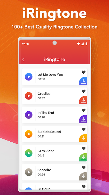 iRingtones for android is best app for you. iRingtones for android is a collection of the best and most îPhøne ringtones for android phone. More than 100+ popular îPhøne ringtones and new îPhøne ringtones here. You can set them as your ringtone, message, alarm, notifications, or set ringtones.