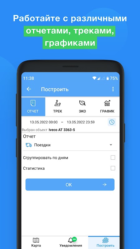 يسمح لك بمراقبة النقل الخاص بك في الوقت الحقيقي. بناء تقارير ورسوم بيانية مختلفة