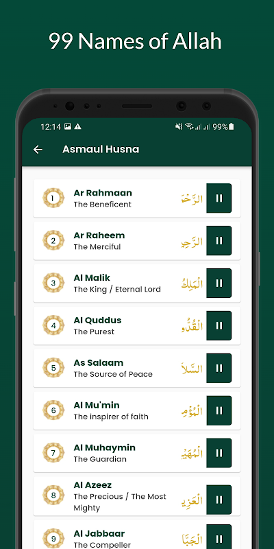 خيار تشغيل الصوت لـ 99 اسمًا من أسماء الله الحسنى