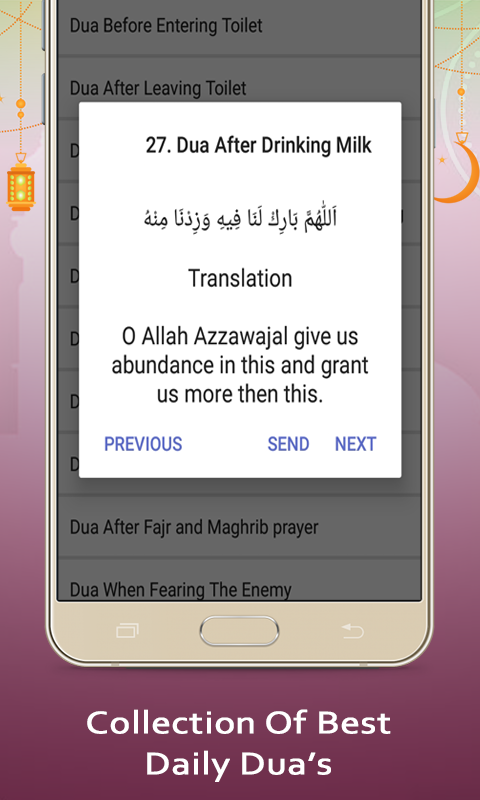 يحتوي تطبيق الدعاء الإسلامي باللغة الأردية على دعاء قرآنية يومية ، ما عليك سوى اختيار نسخة نصية من تطبيق الدعاء والأذكار الإسلامية من دوا كي كتاب ولصق الدعاء الإسلامية في أي مكان رمضان الدعاء الذي تريد دعاء لي ميري دوا يوميًا لتلاوة دعاء الاستحارة كما يشمل الدعاء الإسلامي.