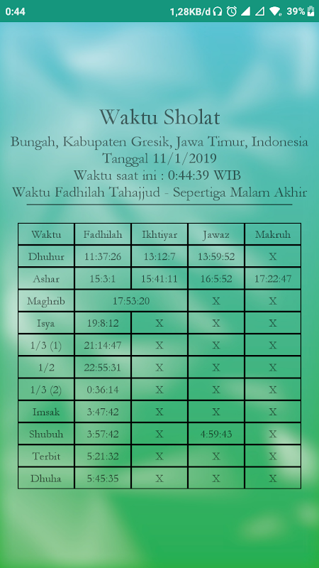- Penambahan Menu Waktu Sholat