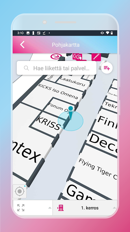 تجمع خدمة الهاتف المحمول Iso Omena بين المزايا الشخصية مع مجموعة مختارة من المتاجر والعروض في الوقت الفعلي ، بالإضافة إلى التوجيه داخل المنزل.