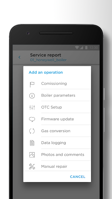 أداة الأجهزة يتكون من جسر واي فاي، مما يتيح الاتصال بين الأجهزة والهواتف الذكية. التطبيق هو دعم التركيب / خدمة المهندسين في التكليف وخدمة الأجهزة. الأداة تدعم OT، MICROCOM وMODBUS.