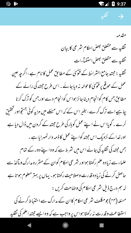 يحتوي هذا التطبيق على الكتاب الأردية "جديد فقهي مسائل". يمكن للمستخدمين تحديد عنوان وقراءة Maslas حول ذلك بسهولة.