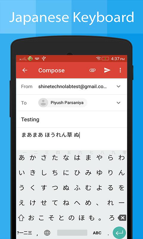 سيسمح لك تطبيق لوحة المفاتيح اليابانية بكتابة رسالة وقصة ومنشورات فيسبوك ومدونات ورسائل بريد إلكتروني باللغة اليابانية.
