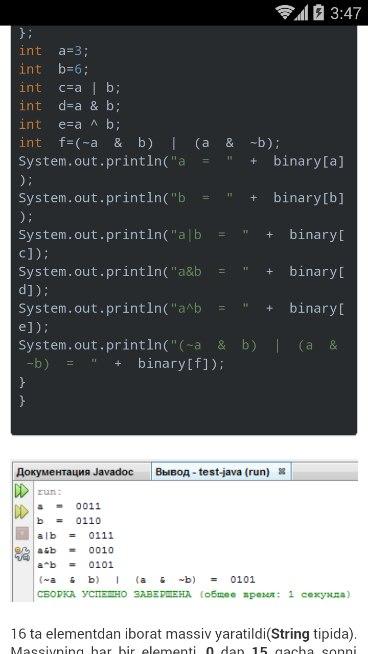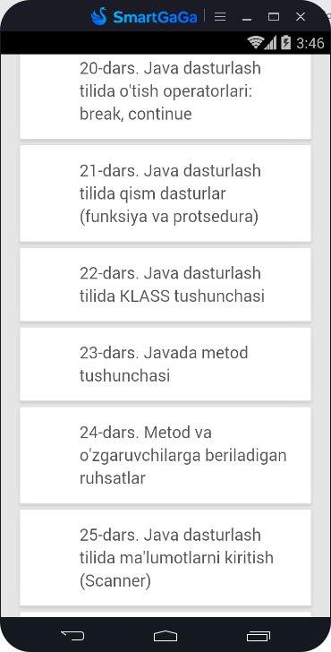 - Java dasturlash tilini mustaqil o'rganuvchilar uchun ajoyib mobil dastur.