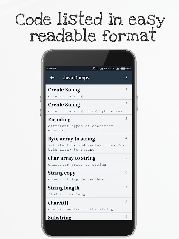 Java Dump is a free android application that contains many java programs with output.