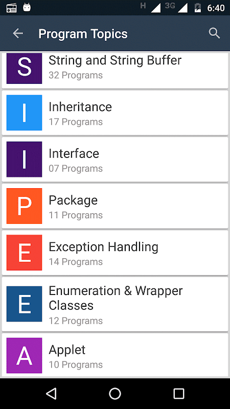 This app helps you refer to a great collection java programs and theory on the go and Helps you improve Logical thinking of various problems related to Programming .Its an Application to give source code and output for various Java Programs as well as theory.