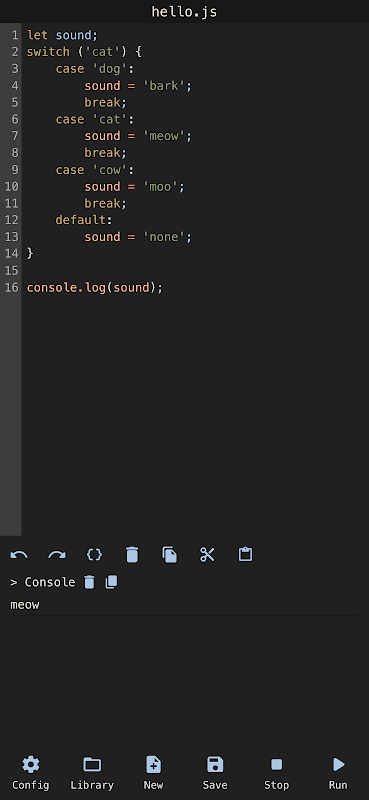 محرر أكواد JavaScript البسيط الذي يسمح لك بتشغيل البرامج النصية لوحدة التحكم أثناء التنقل من جهازك المحمول.