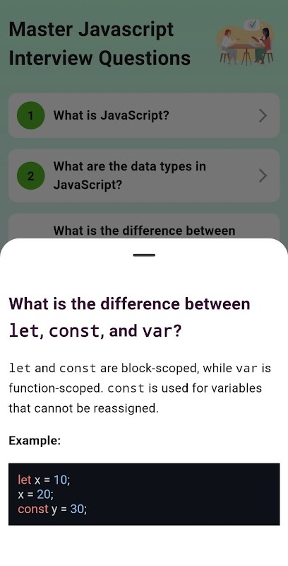 مسار التعلم الشامل: سواء كنت تستعد لمقابلة عمل، أو تتطلع إلى إنشاء مشاريع، أو ترغب ببساطة في إتقان JavaScript، فإن هذا التطبيق يغطي جميع جوانب اللغة.