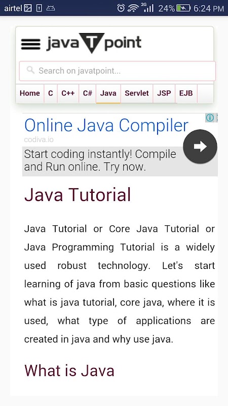يوفر JavaTpoint الرسمية الروبوت التطبيق الدروس وأسئلة المقابلة.