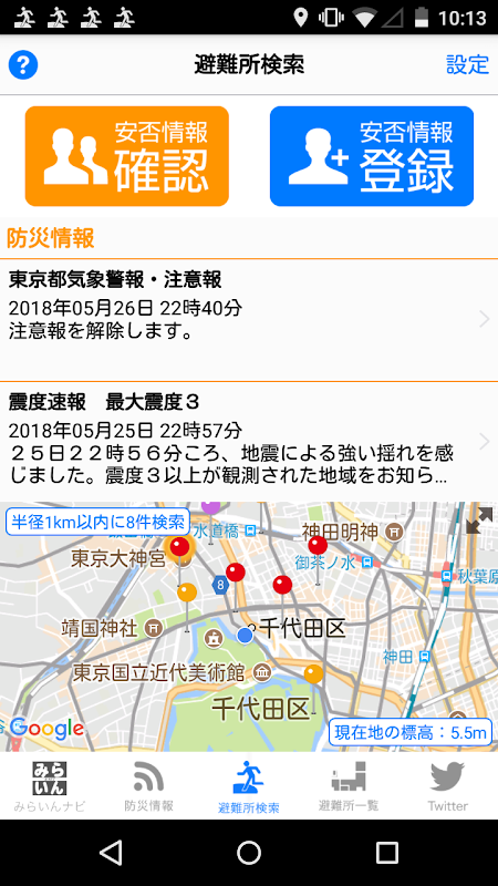 ● في "مأوى البحث"، والبحث عن أقرب ملجأ من الوضع الحالي، والاتجاهات وتوجيه المسار. لأنه لديه "تسجيل سلامة" و "وظيفة تأكيدا سلامة"، وتأكيد مسبق من تحضيرا للكوارث ويساعد على المأوى البحث في الكارثة.